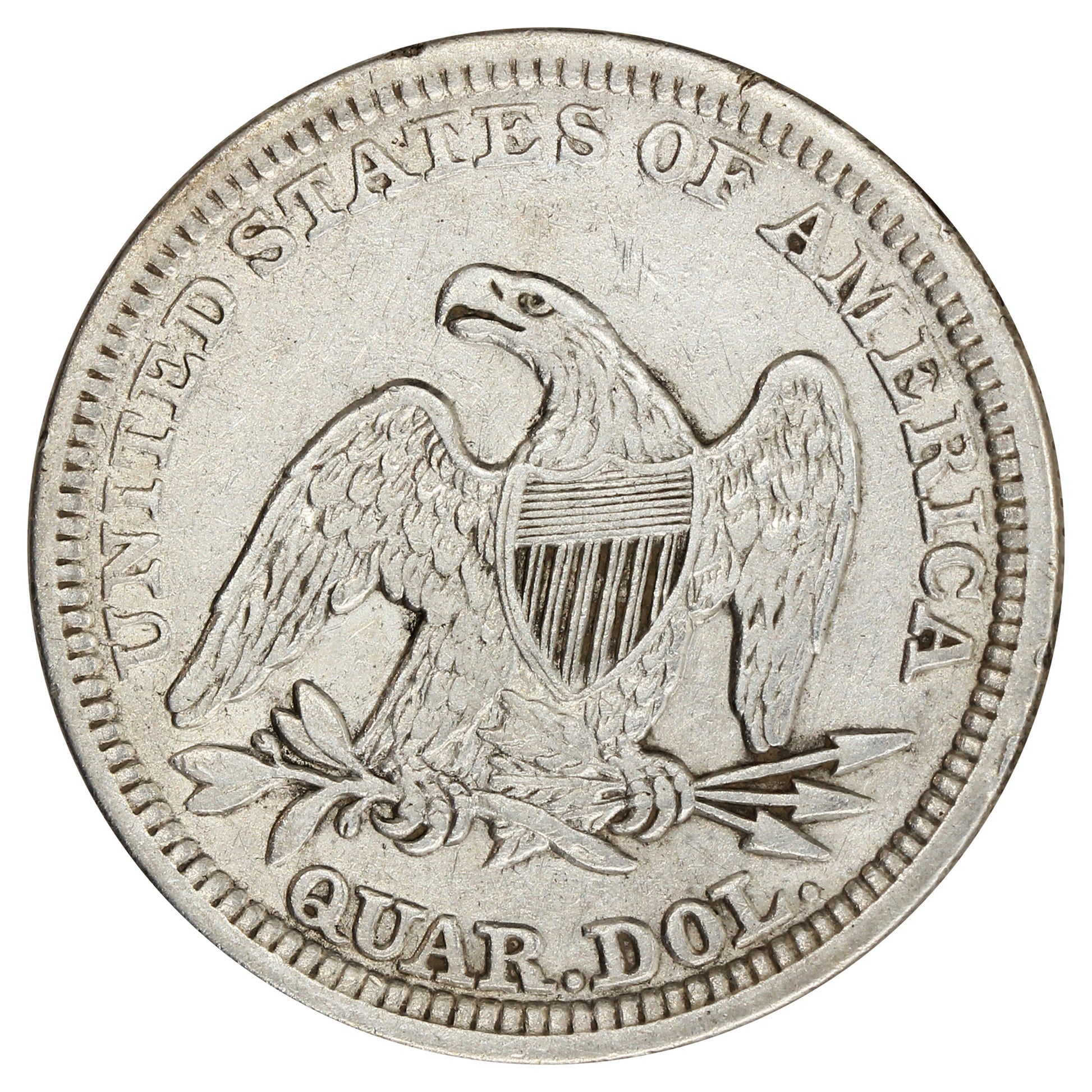 Obverse: Seated liberty looking over her right shoulder, with a cap on a stick in her left hand and a shield just below her right, date below, and thirteen stars representing the original thirteen colonies around.