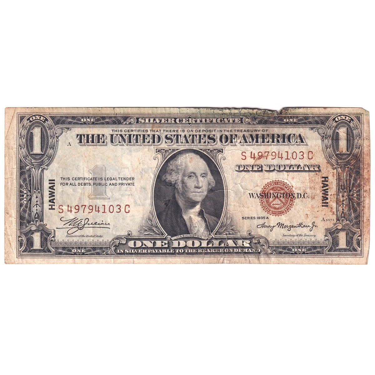 USA 1935A $1 Note, FR #2300, Julian-Morgenthau, Silver Certificate, HAWAII, F-VF (Damaged)