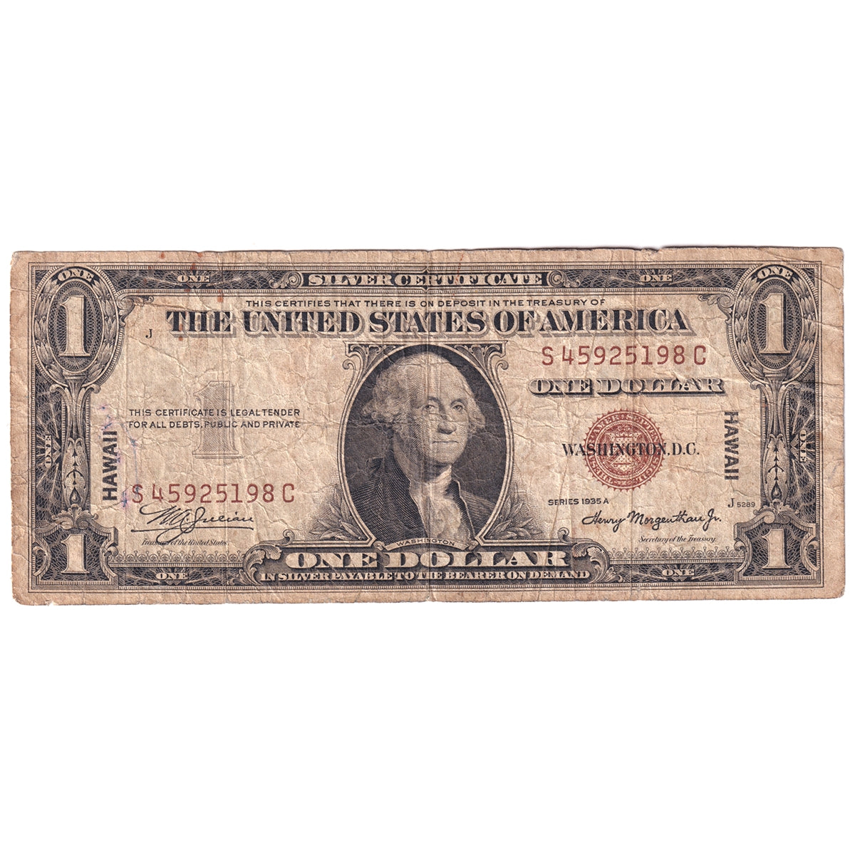 USA 1935A $1 Note, FR #2300, Julian-Morgenthau, Silver Cert., HAWAII, Fine (Damaged)