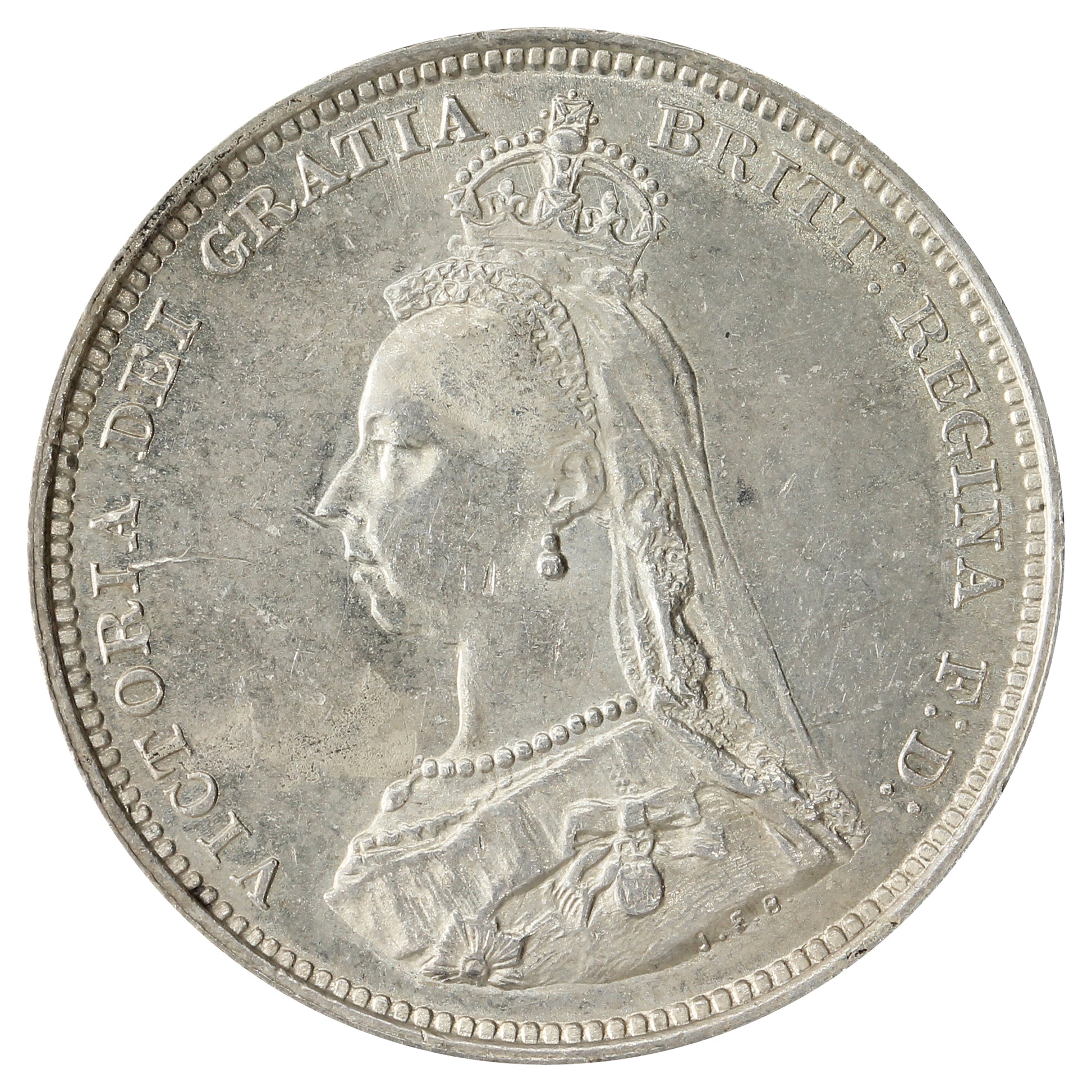 Obverse: Smaller crowned bust ("Jubilee Head") of Queen Victoria facing left, with the legend around.