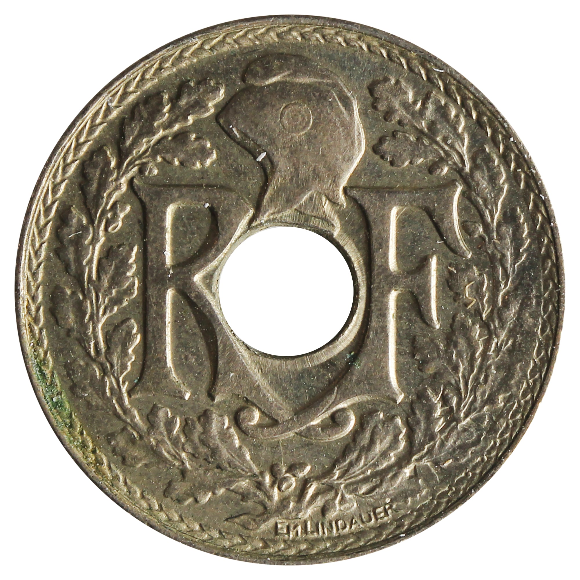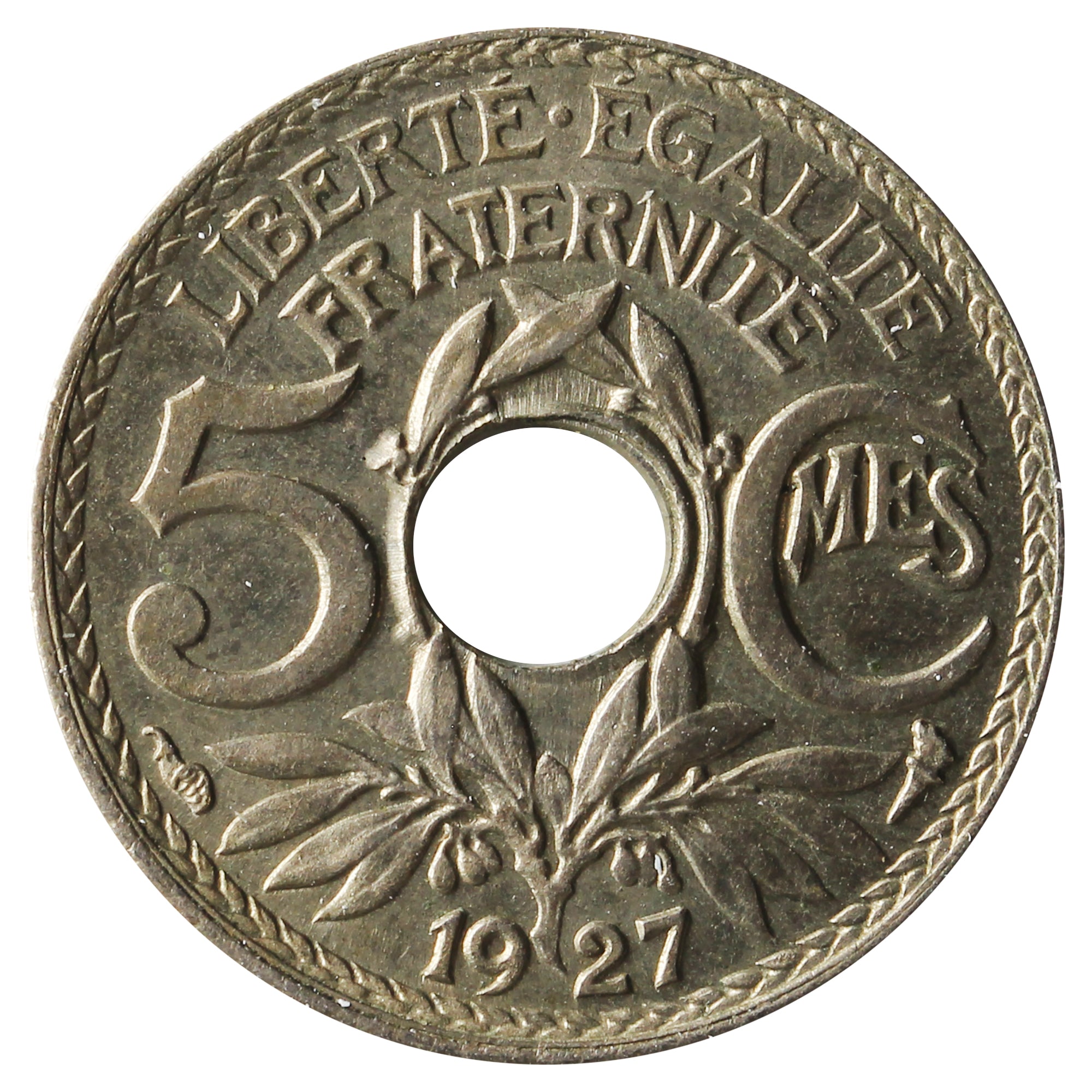 Reverse: Demomination divided by a plant and a centre hole, with the date below, and legend above; mintmark is below the "5".