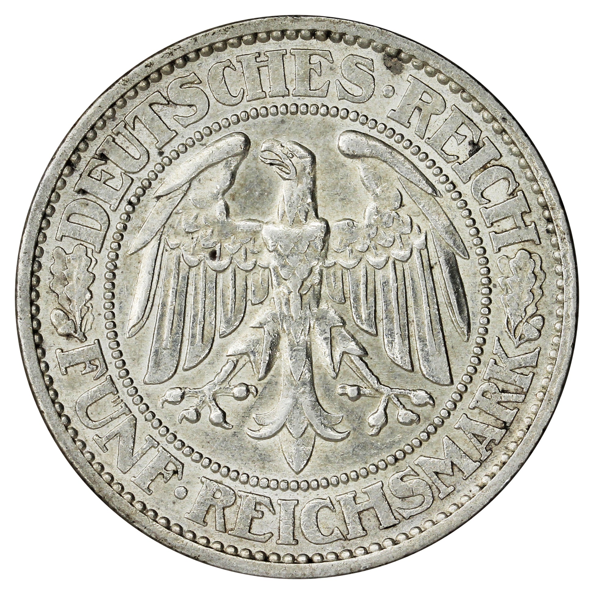 German Weimar Republic 1932A Oak Tree 5 Marks Almost Uncirculated (AU50) $