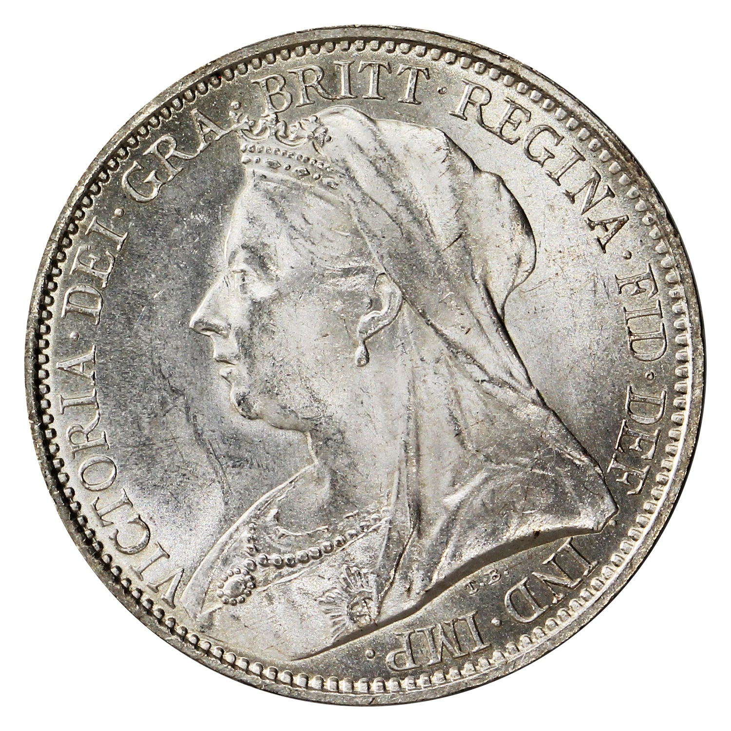 Obverse: Older crowned and veiled bust ("Old Head") of Queen Victoria facing left, with the legend around.
