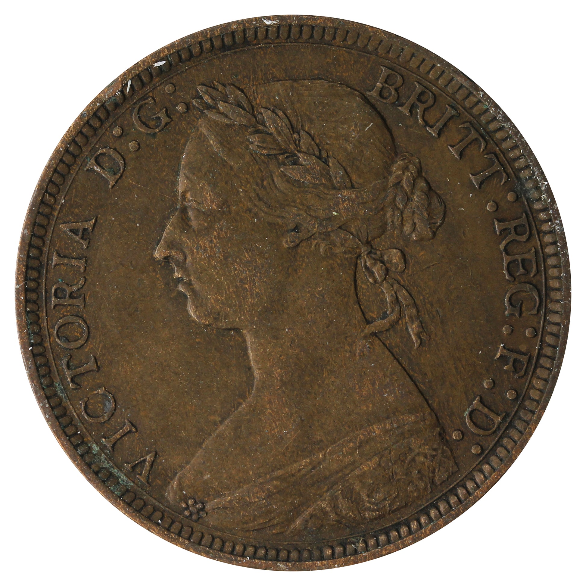 Obverse: Second wreathed portrait ("Bun Head") of Queen Victoria facing left, with the legend around.