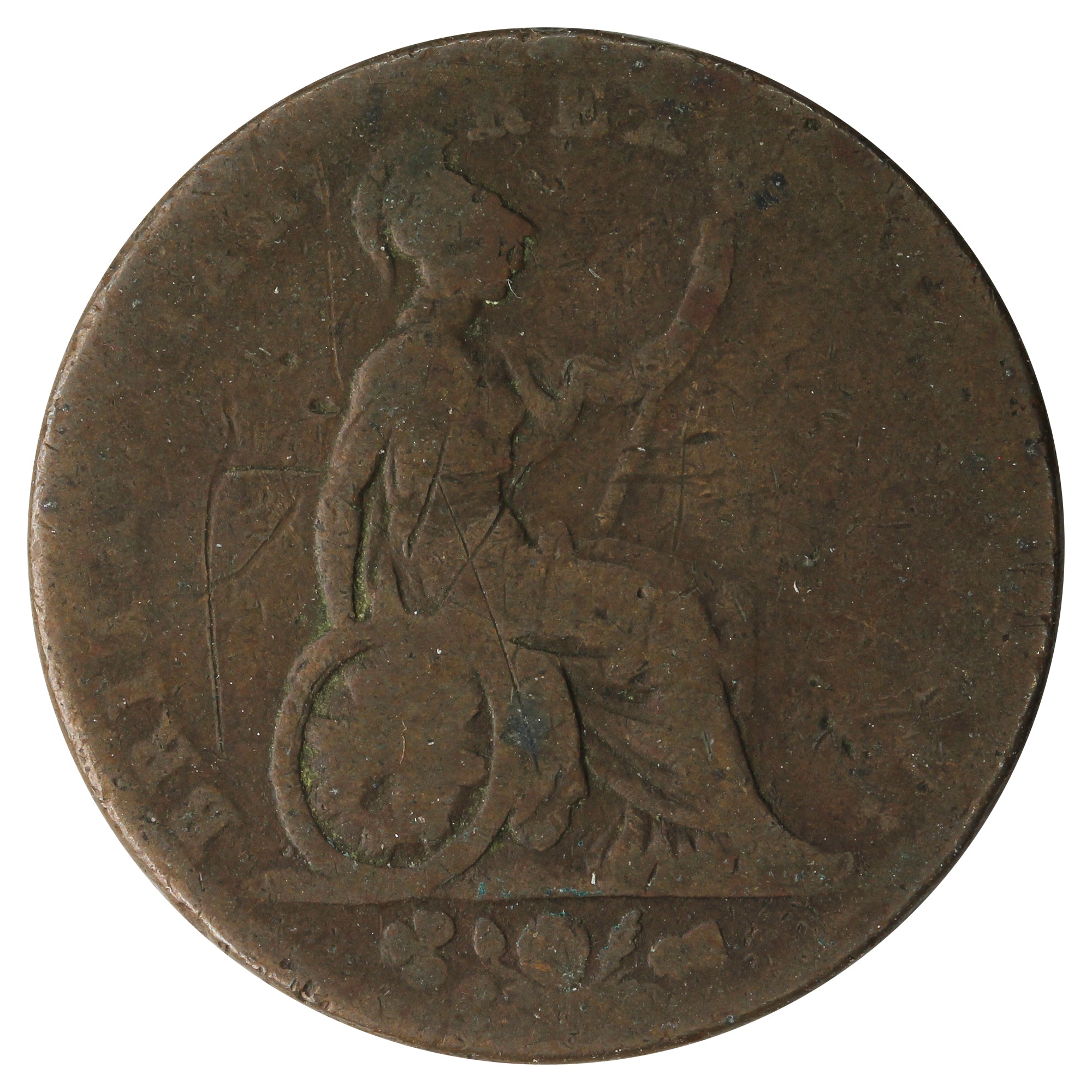 Reverse: Seated figure of Britannia facing left, with a trident in the left hand and a shield bearing the Union flag in the right hand, the legend around, and national flower emblems below.