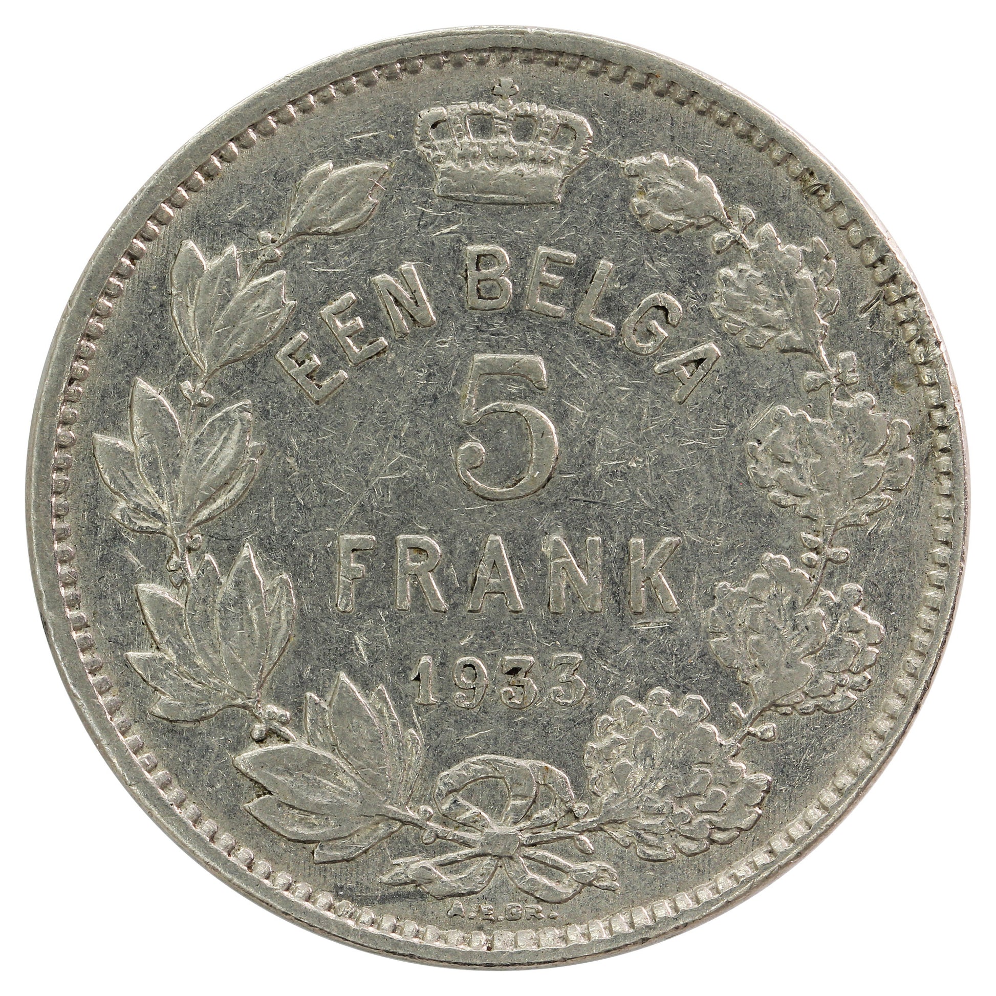 Belgium 1933 Dutch 5 Francs F-VF (F15)
