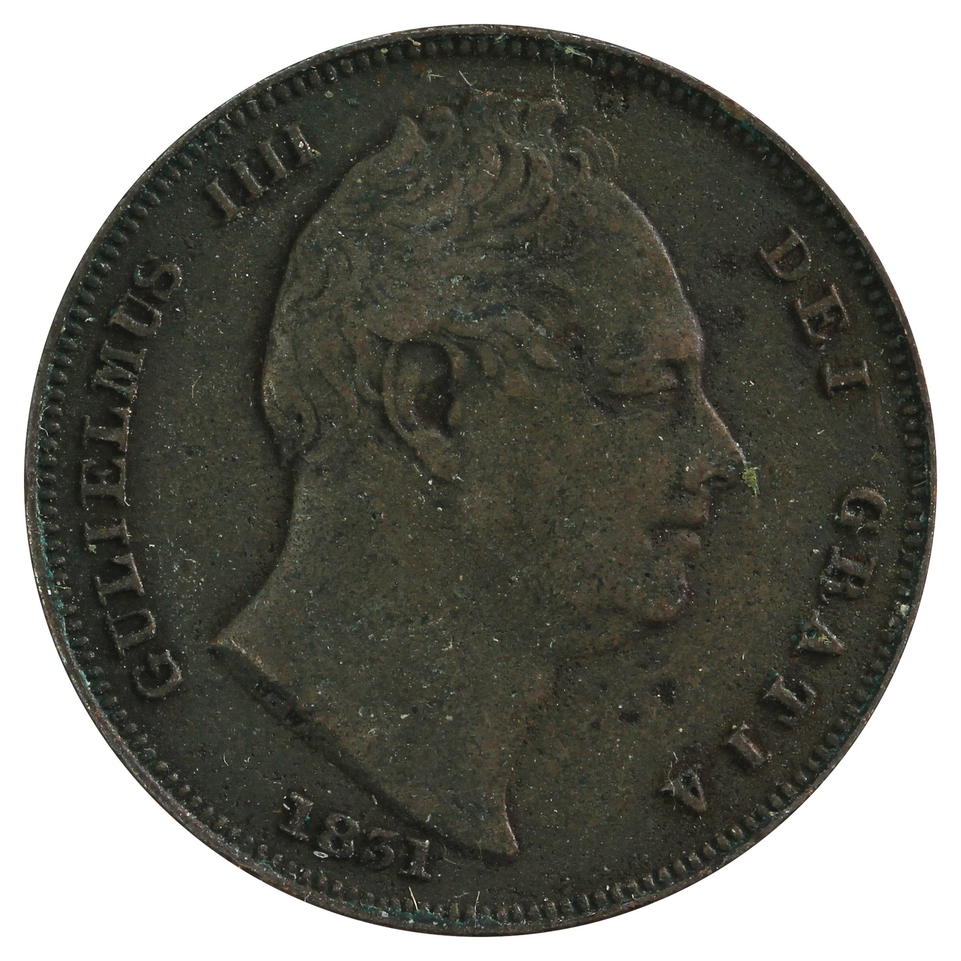 Obverse: Uncrowned portrait of King William IV facing right, with the legend around, and the date below.