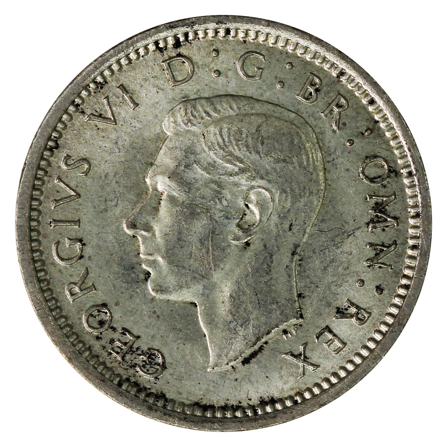 Obverse: Uncrowned portrait of King George VI facing left, with the legend around.