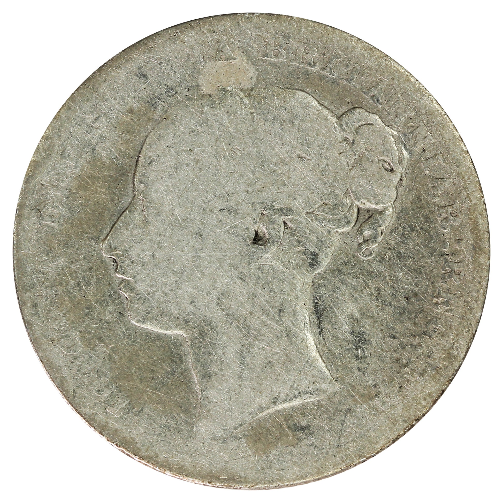 Obverse: Uncrowned portrait ("Young Head") of Queen Victoria facing left, with the legend around.