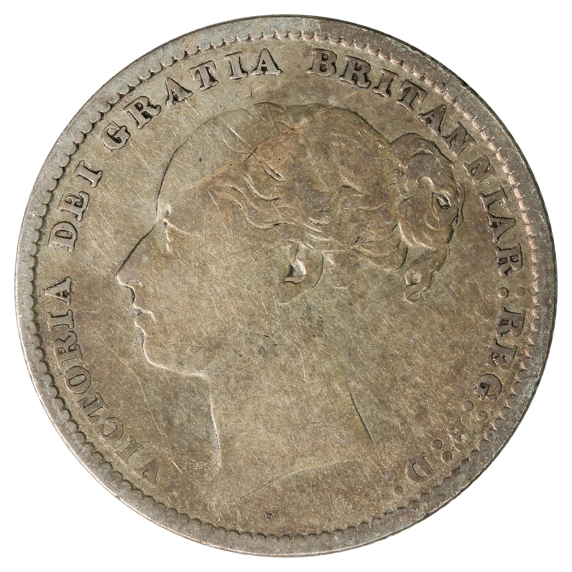 Obverse: Uncrowned portrait ("Young Head") of Queen Victoria facing left, with the legend around.