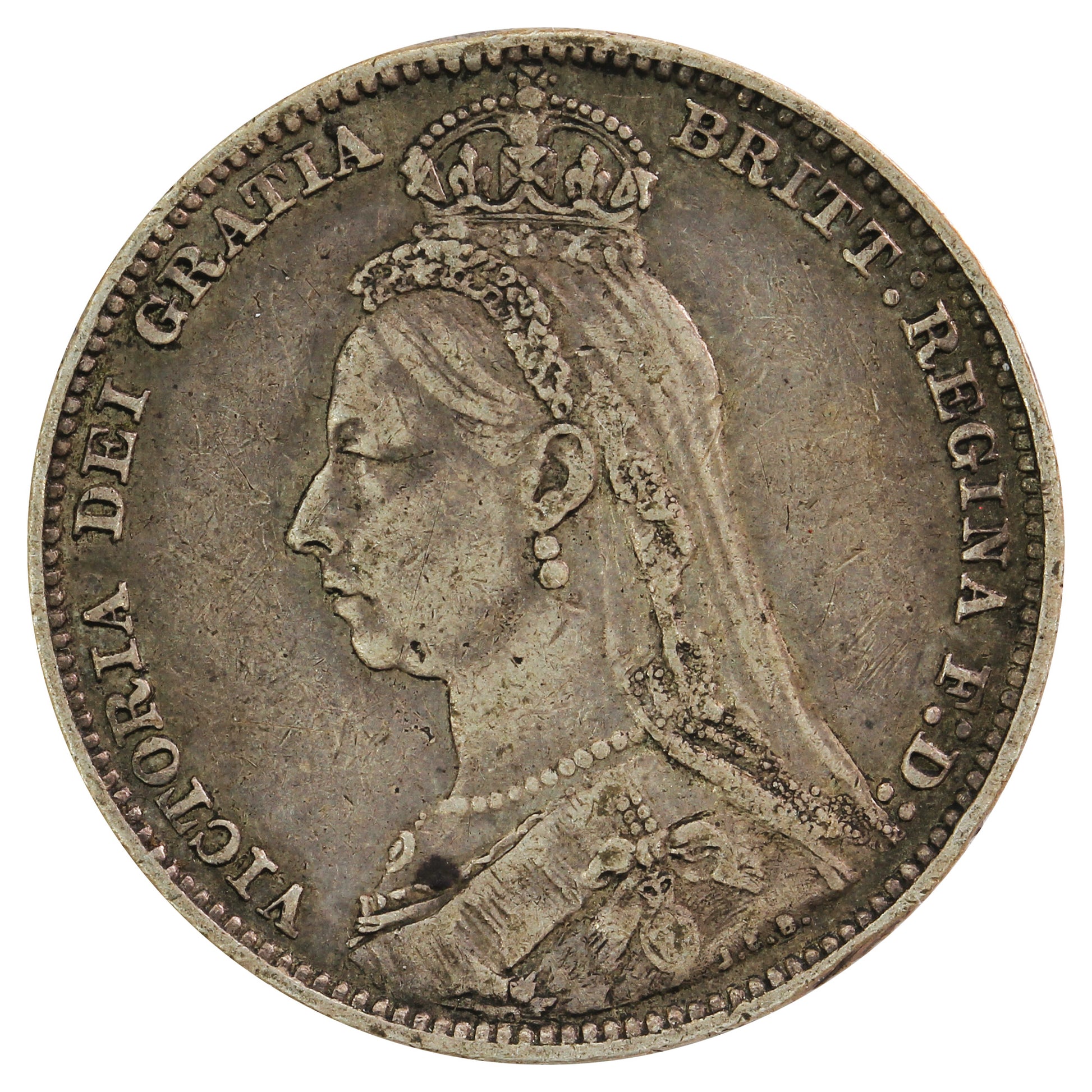 Obverse: Larger crowned bust ("Jubilee Head") of Queen Victoria facing left, with the legend around.