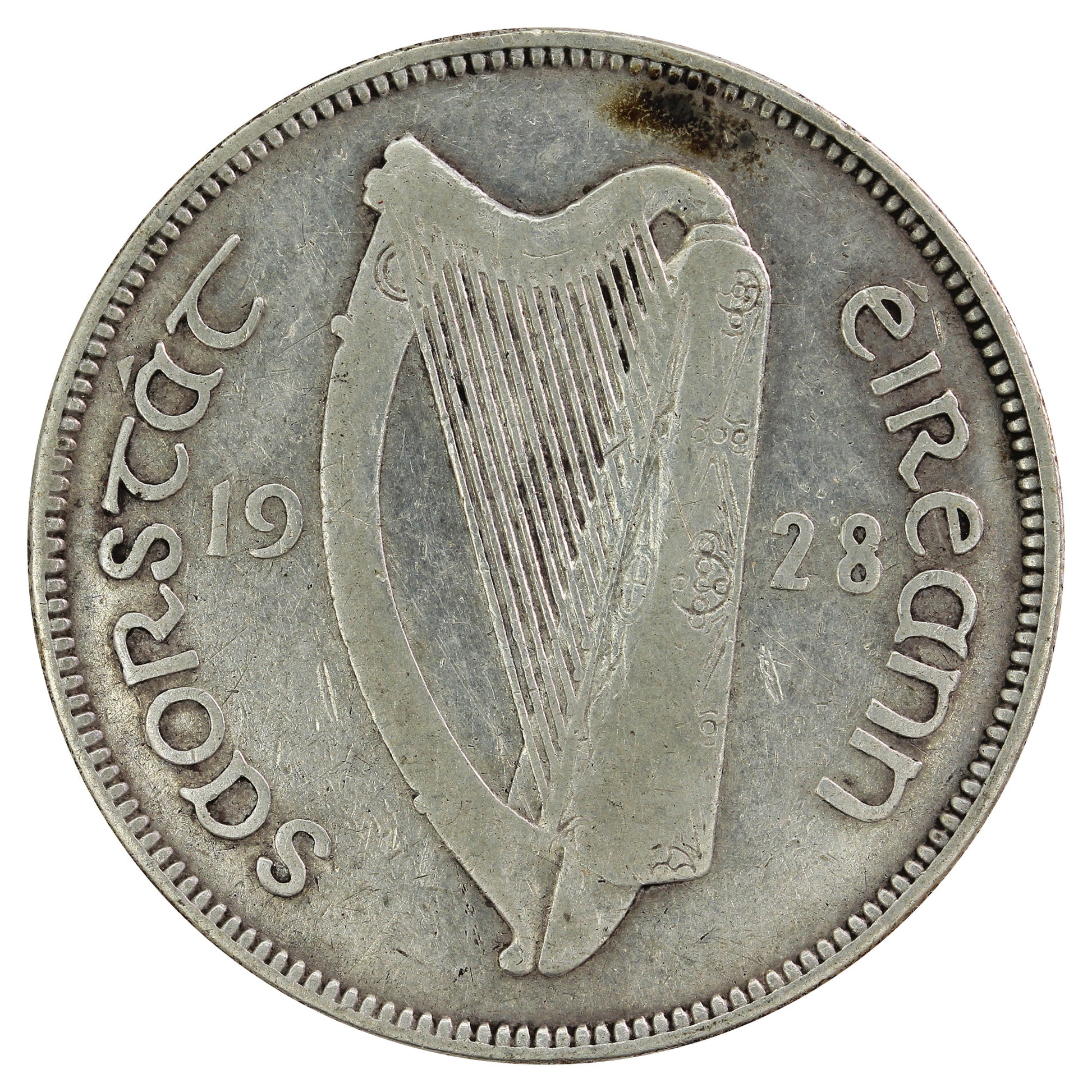 Obverse: Cláirseach (Gaelic harp) dividing the date.