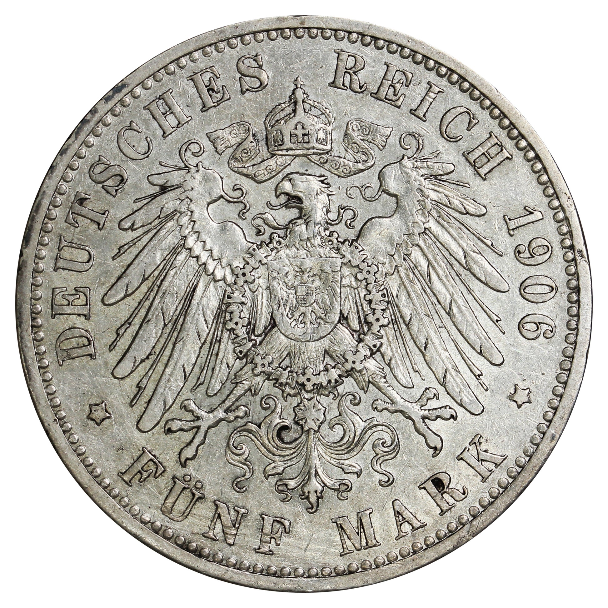 German States 1906A Prussia 5 Marks Extra Fine (EF40)
