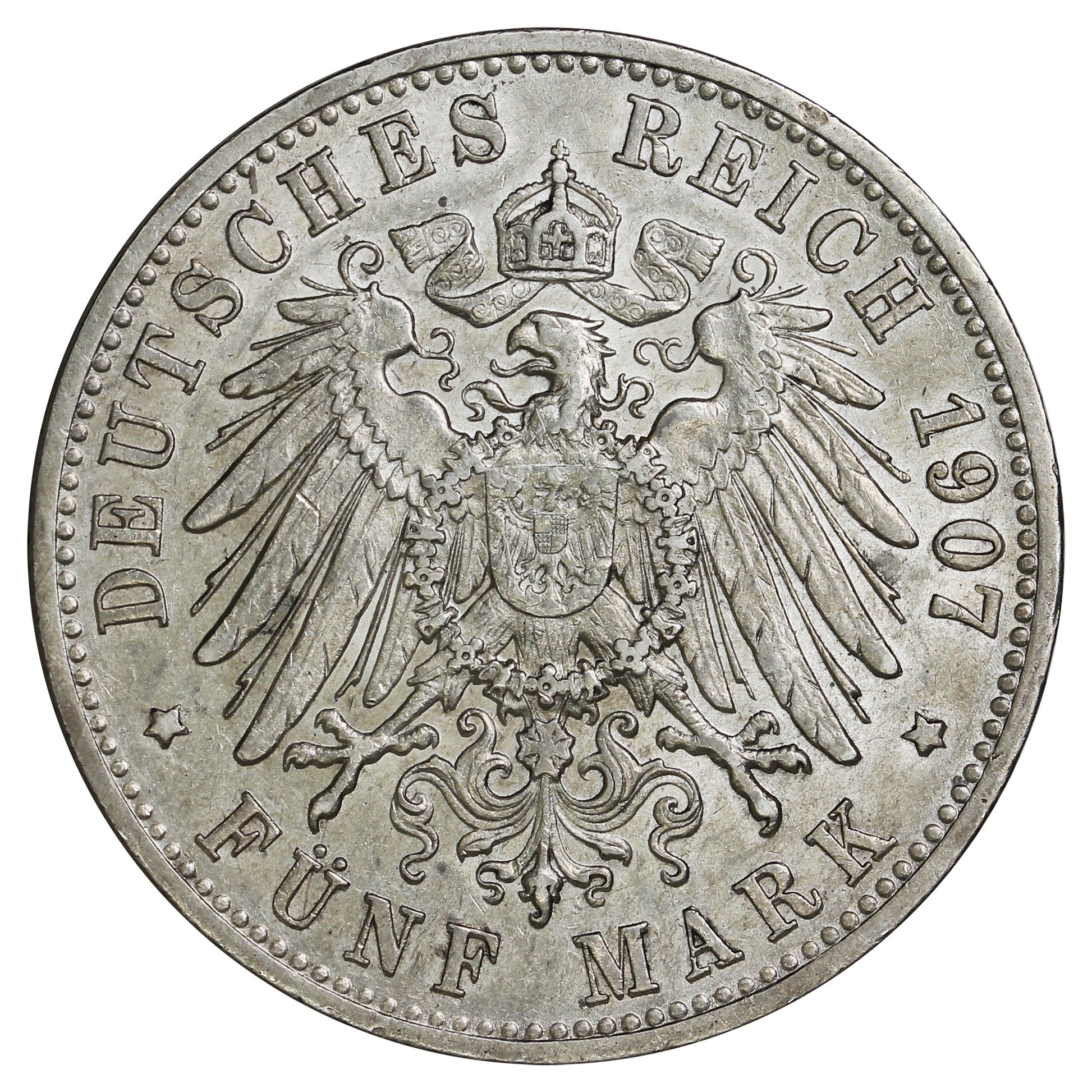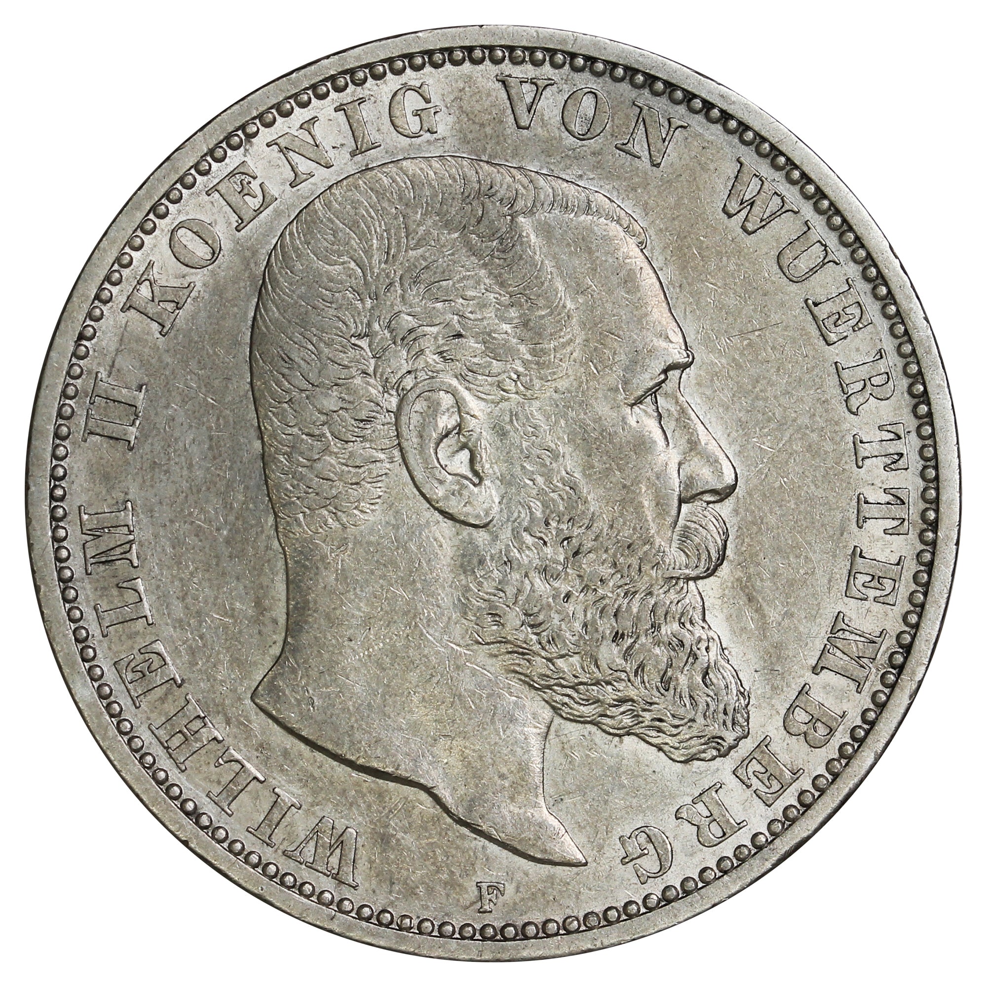 German States 1907F Wurttemburg 5 Marks EF-AU (EF45) (L)