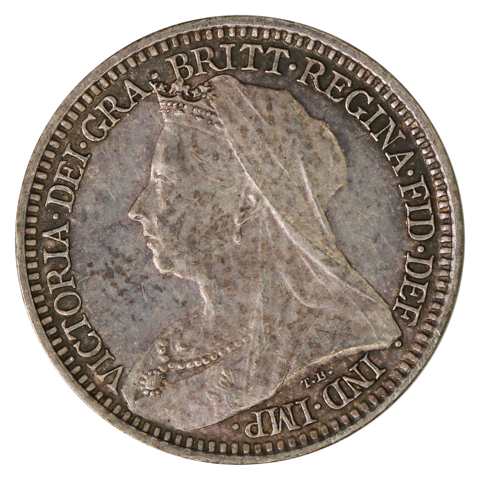 Obverse: Older crowned and veiled bust (Old Head) of Victoria facing left, with the legend around.