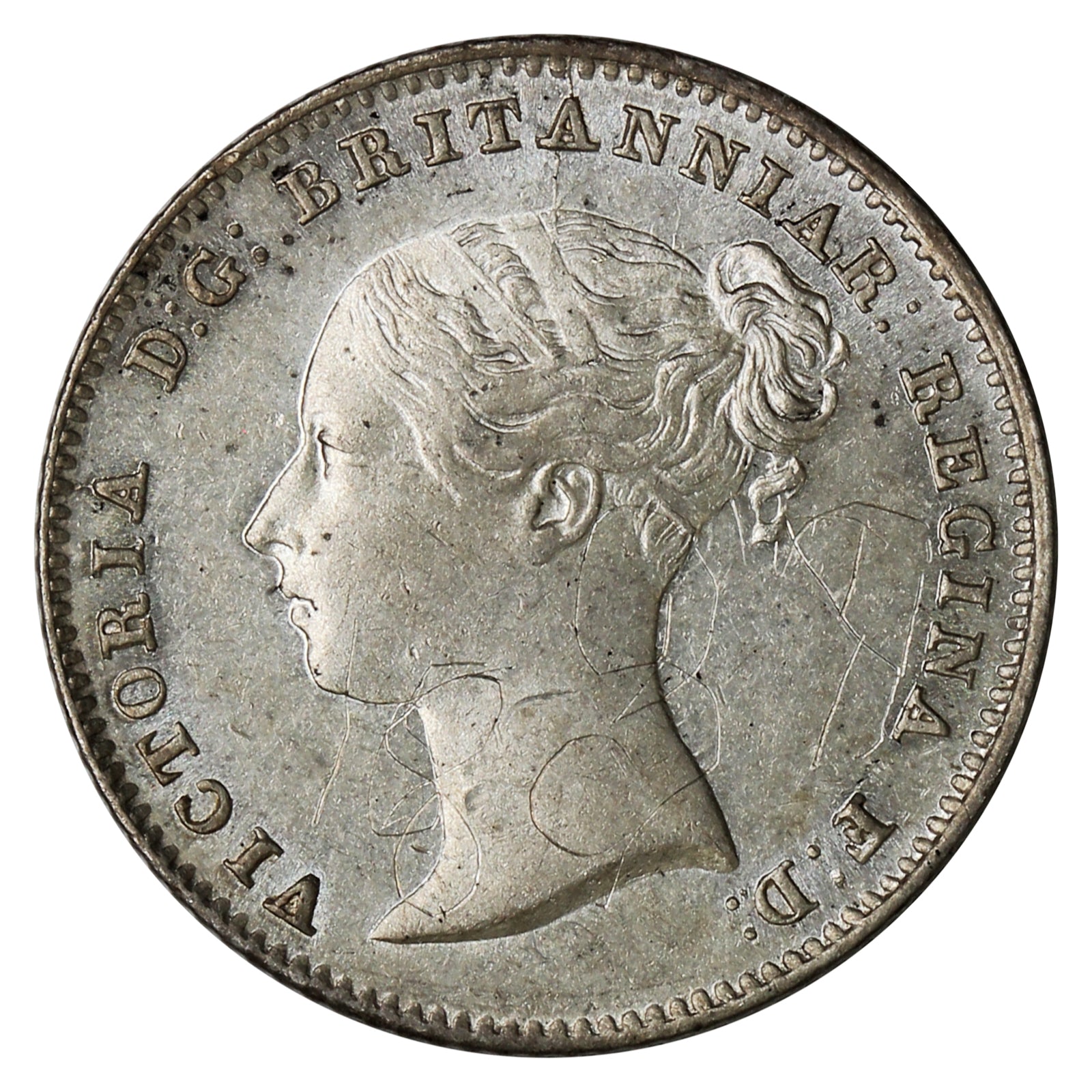 Obverse: Young uncrowned portrait of Queen Victoria ("Young Head") facing left, with the legend around.