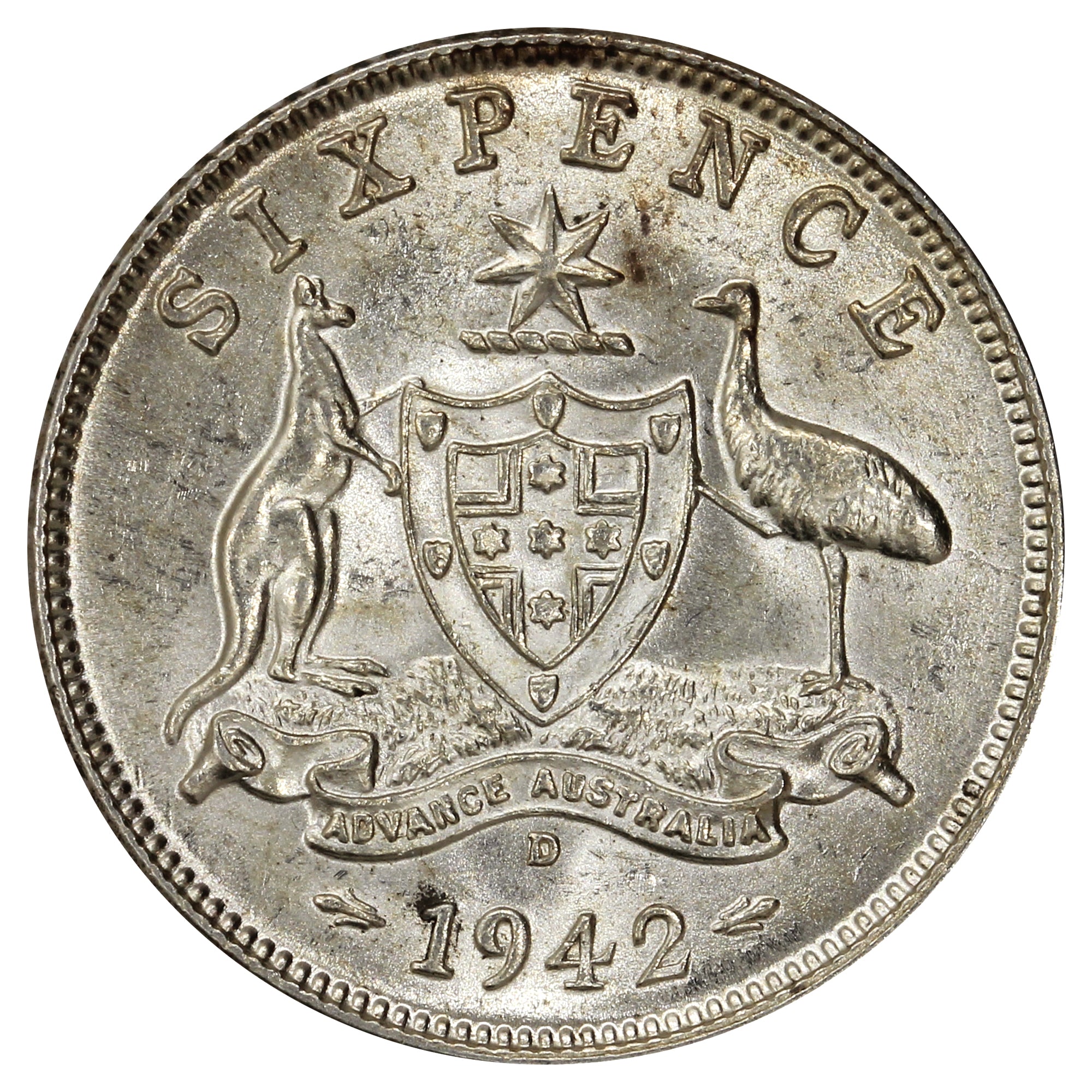 Australia 1942D 6 Pence Brilliant Uncirculated (MS63)