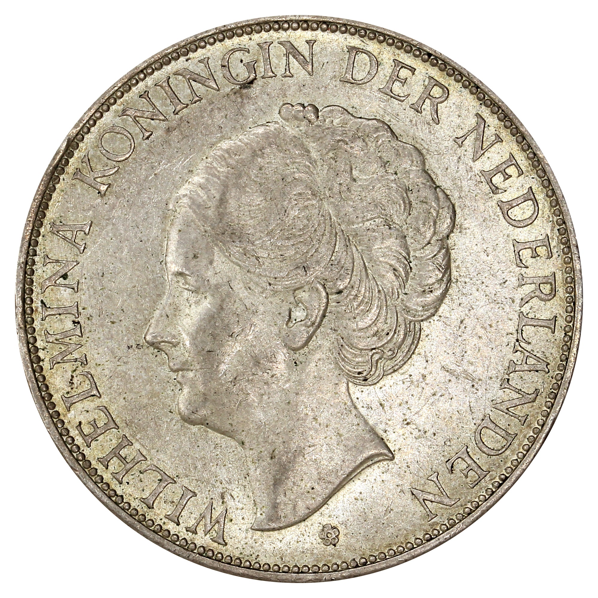 Obverse: Portrait of Wilhelmina facing left, with the legend around.