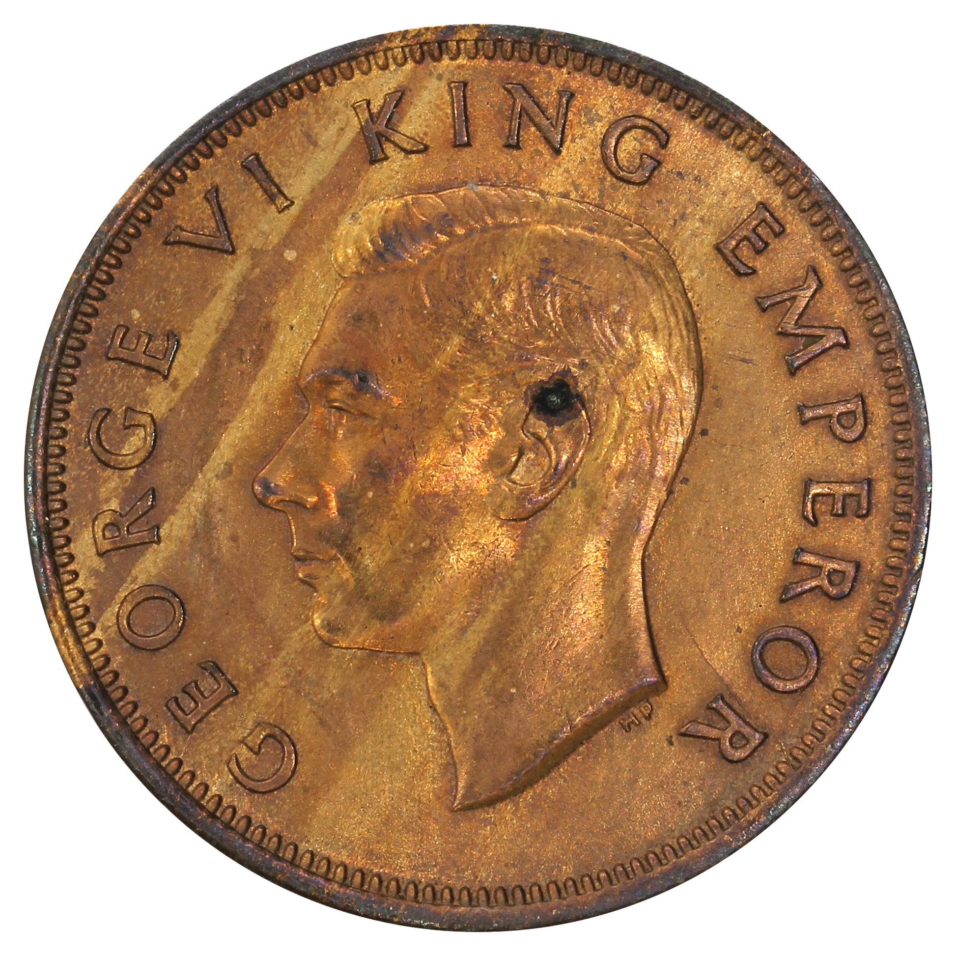 Obverse: Uncrowned portrait of George VI facing left, with the legend around.
