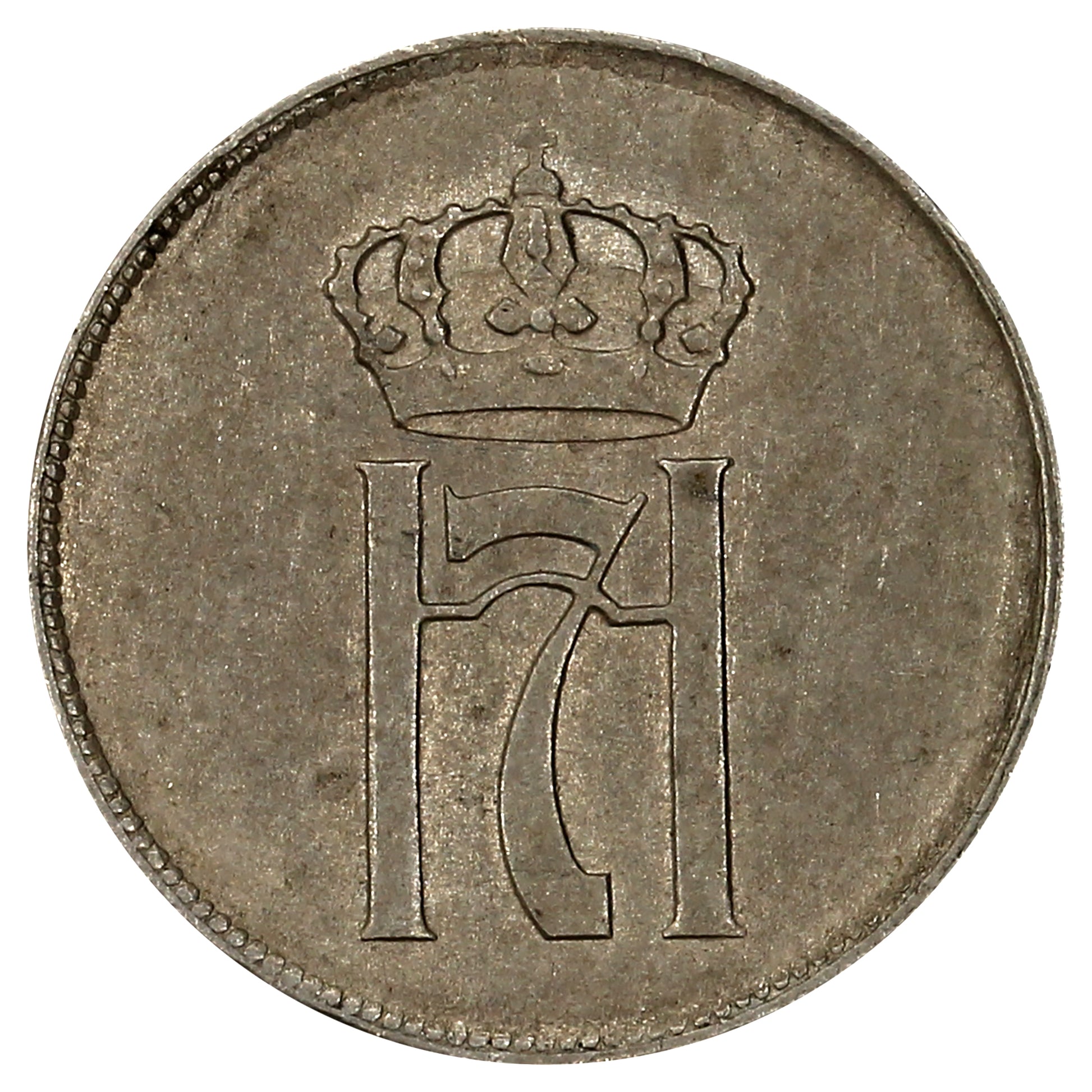 Obverse: Crowned monogram of Haakon VII, within a beaded rim.