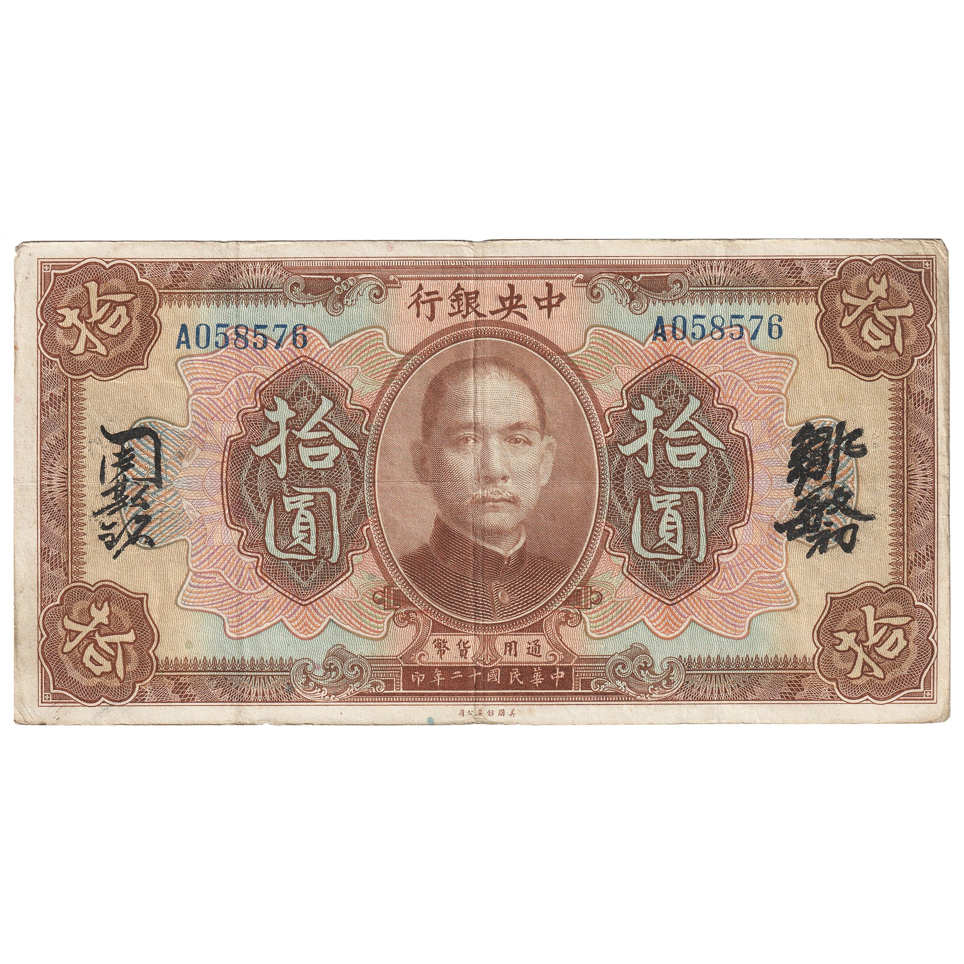 Republic of China 1923 10 Dollar Note, Pick #176e, VF-EF