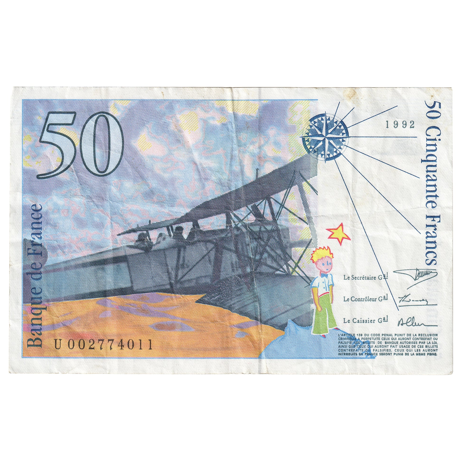 France 1992 50 Francs Note, Pick #157a, VF
