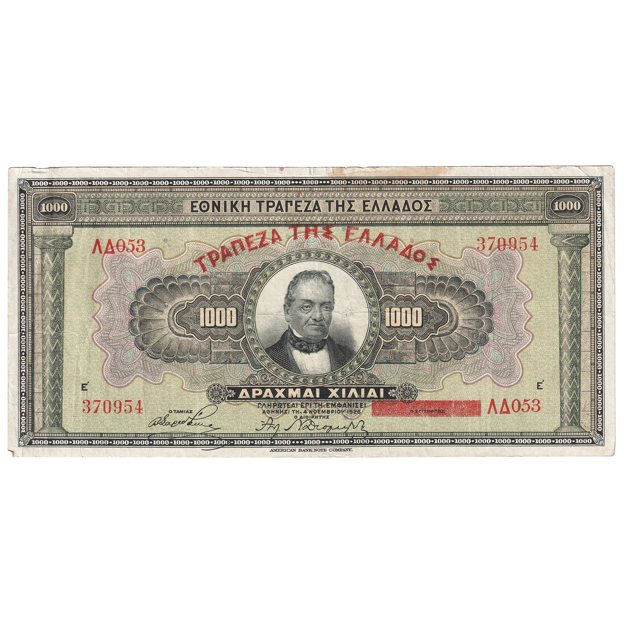Greece 1926 1,000 Drachmai Note, Pick #100b, VF