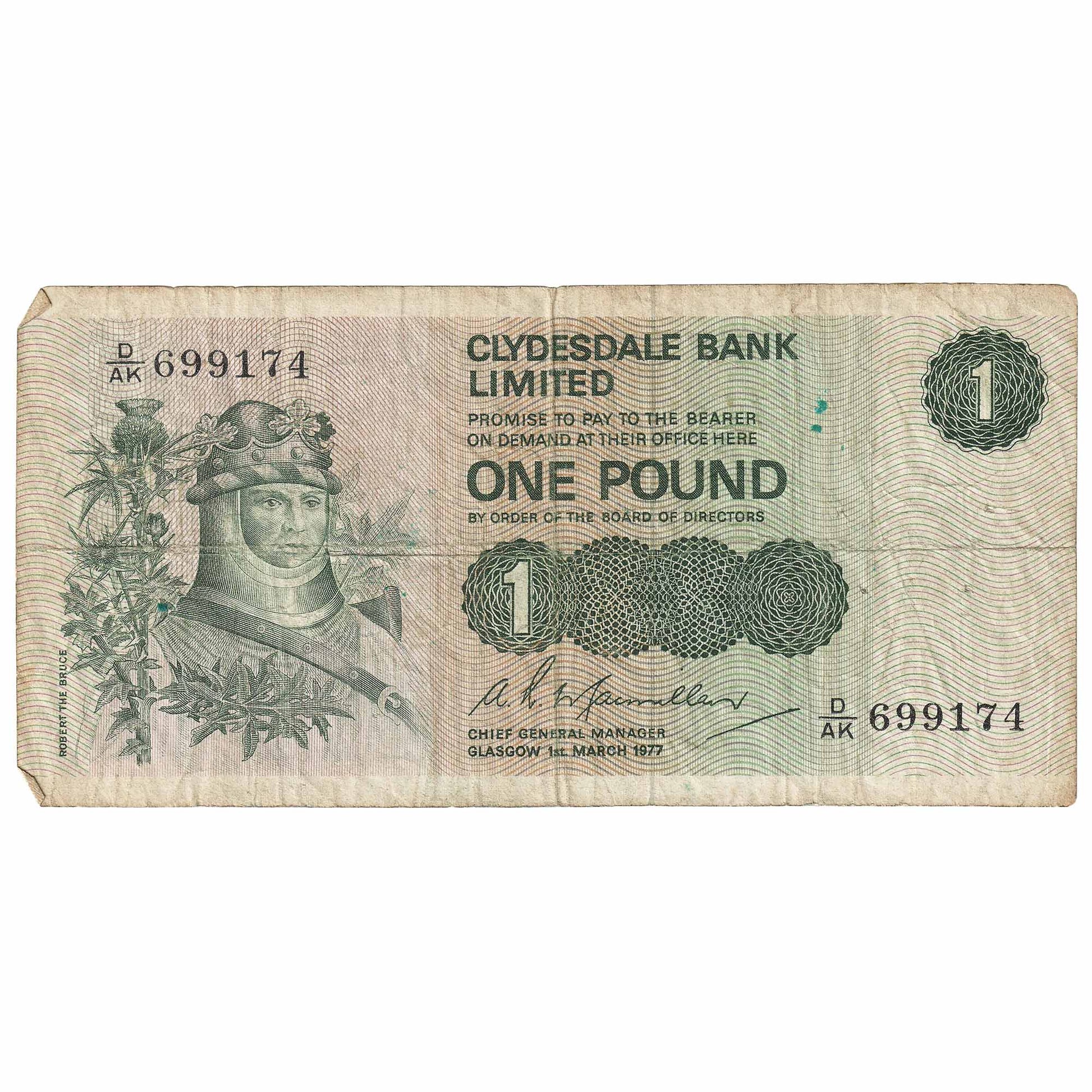 Scotland 1977 Clydesdale Bank 1 Pound Note, SC318c, Circ