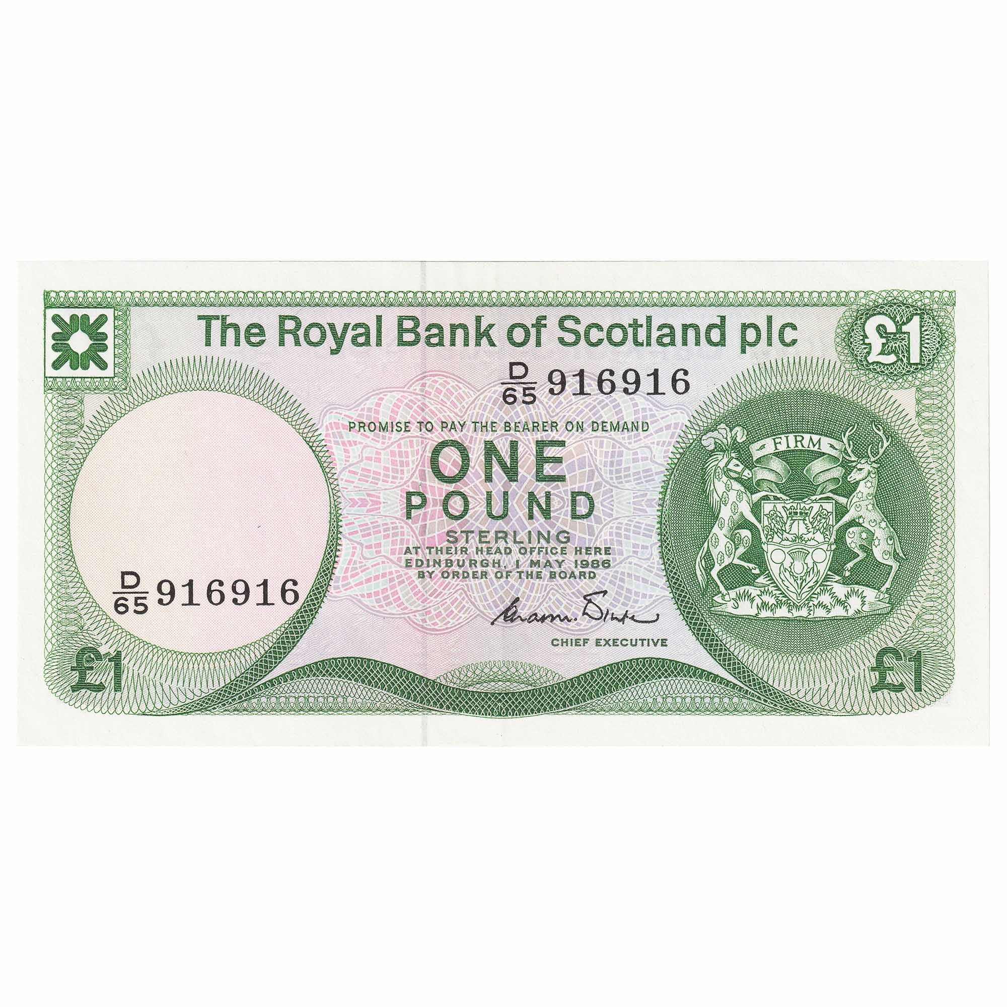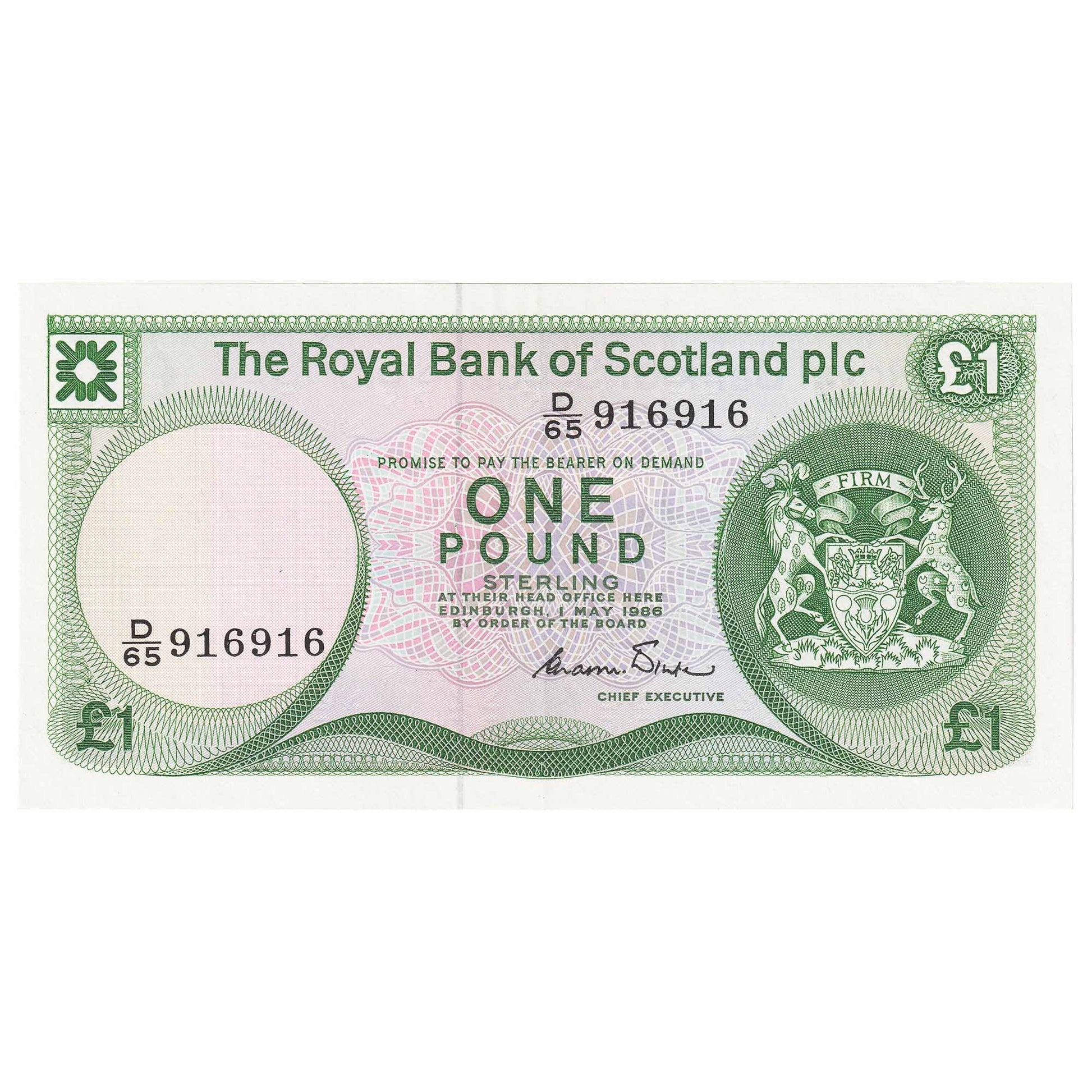 Scotland 1986 Royal Bank of Scotland 1 Pound Note, SC831b, AU