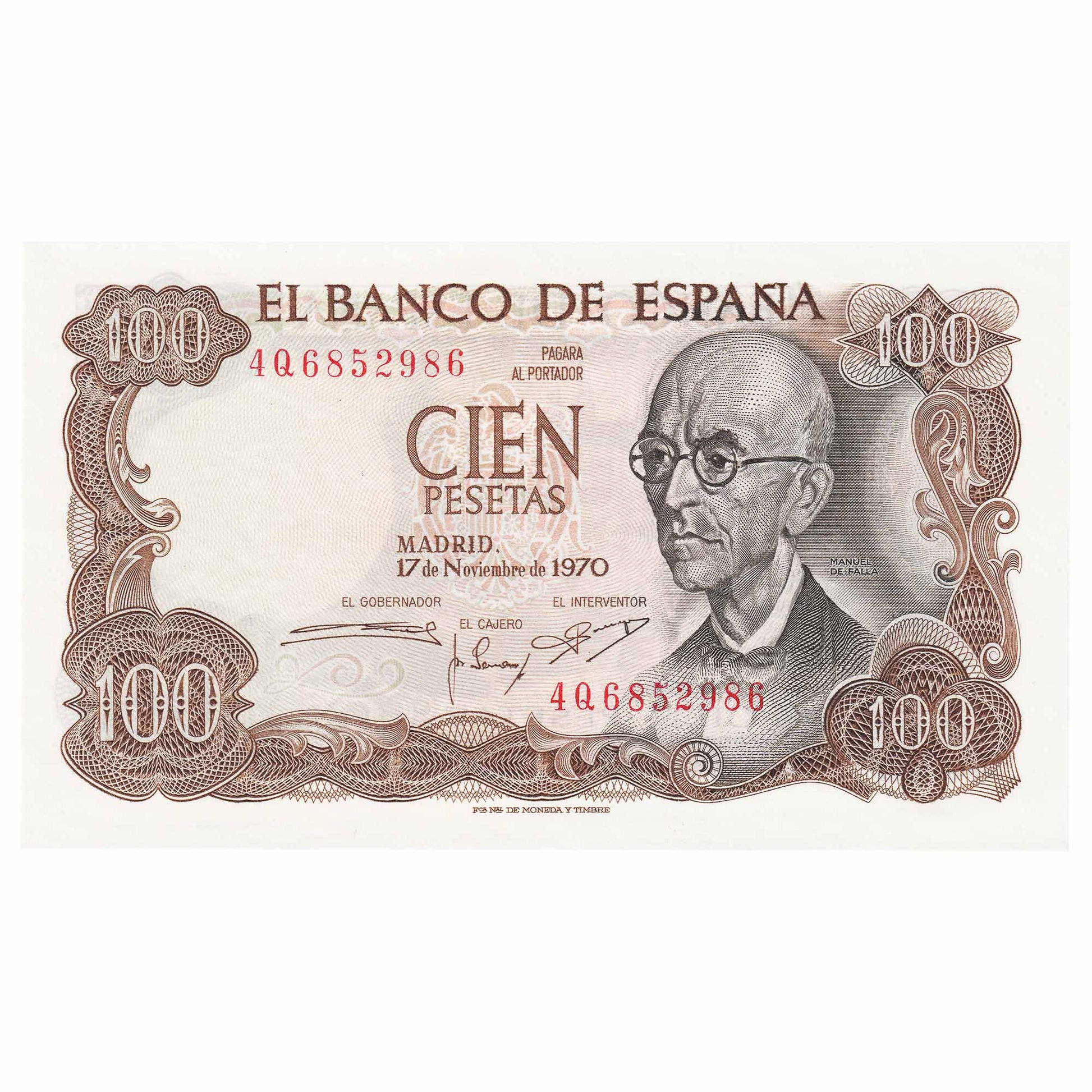 Spain 1970 100 Pesetas Note, Pick #152a, UNC
